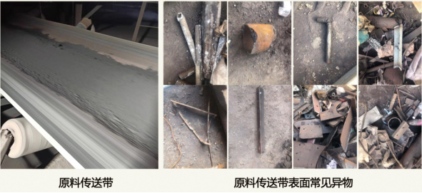 皮帶輸送物料的異物一般是物料本身摻雜,運(yùn)輸過程摻雜、皮帶機(jī)配件掉落等等。異物可導(dǎo)致物料質(zhì)量降低、皮帶磨損、皮帶撕裂等后果。為提高物料純度,保障皮帶安全,需對(duì)皮帶運(yùn)輸物料中的異物進(jìn)行檢測(cè)。
