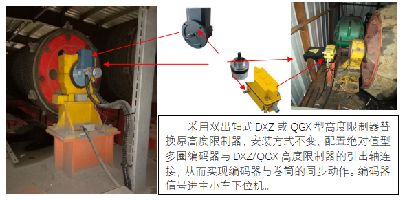 安裝方式是采用支架或更換原車(chē)的高度限制器,將編碼器軸與高度限制器的軸連接同時(shí)與卷筒軸同心連接。